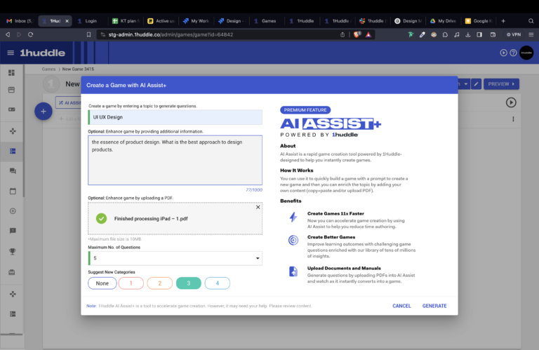 • AI Assist for Managers – Enabled managers to automate game creation by uploading training material, reducing workload.